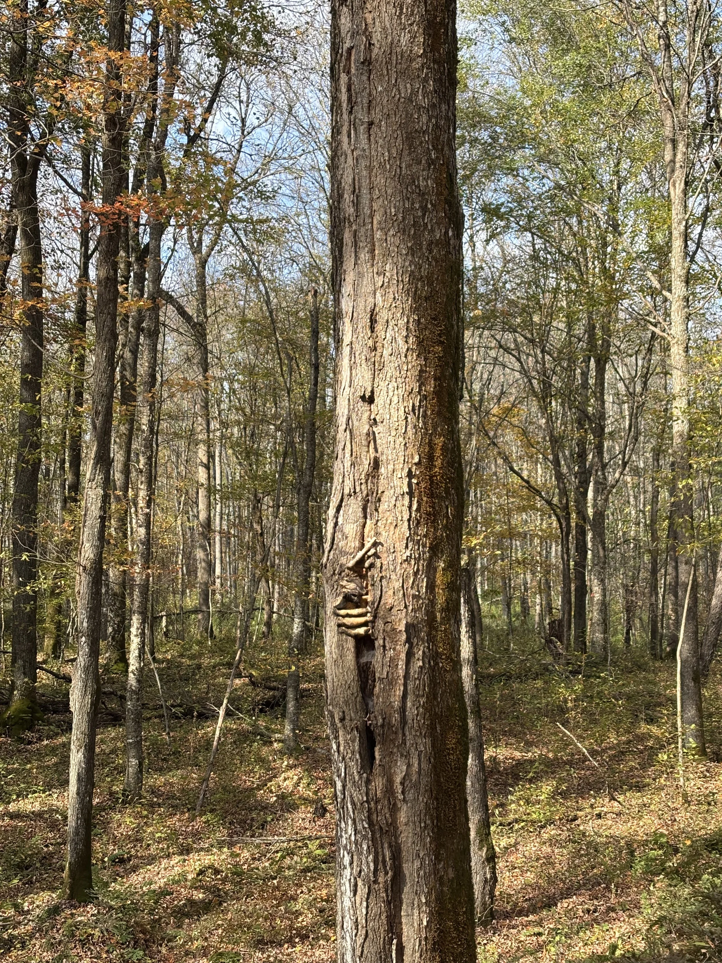 Skeleton breaking out of a tree.