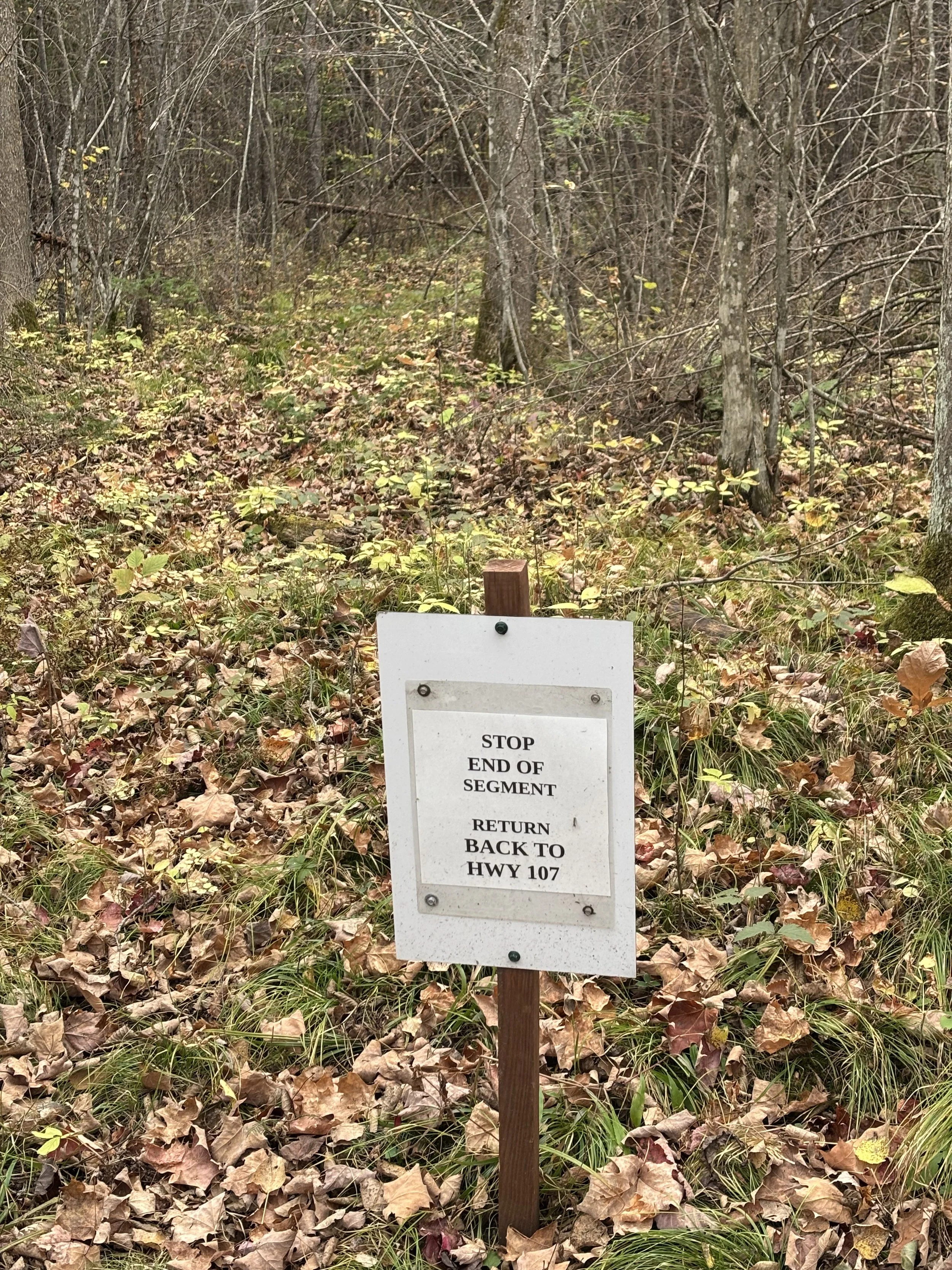 The Grandfather Falls Segment includes an out-and-back portion, 1.7 miles each way. I thought there would be a geologically significant feature at the end but it was just this sign.
